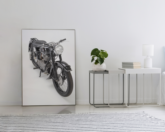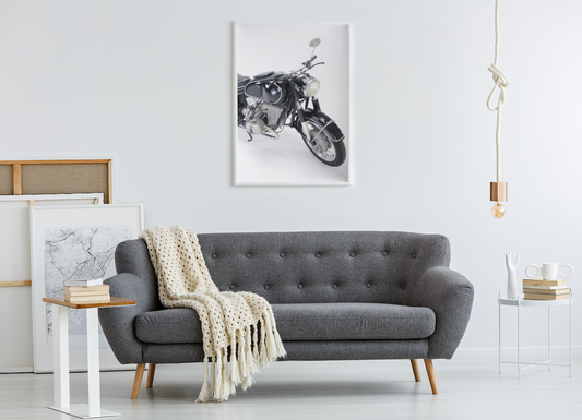 • Nahaufnahme der polierten Alu-Dibond-Kante eines Wandbilds
