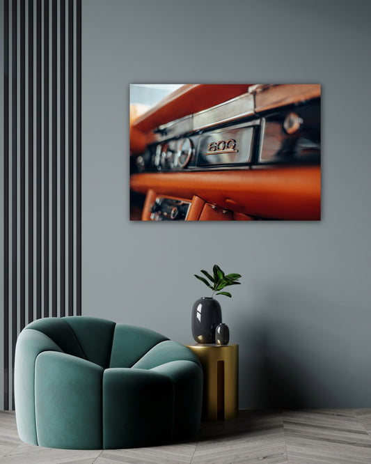 • Nahaufnahme der polierten Acrylglas-Kante eines Wandbilds