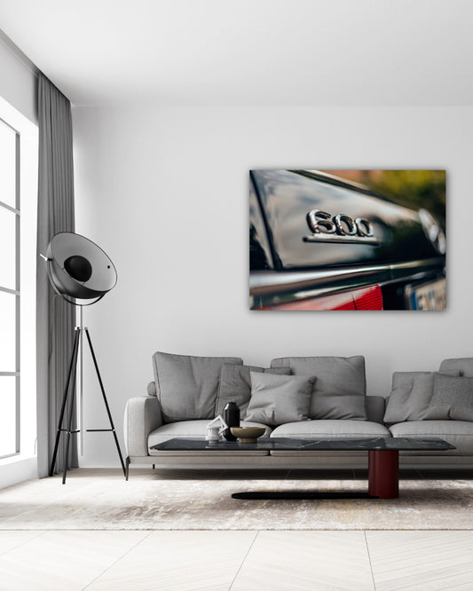 • Nahaufnahme der polierten Alu-Dibond-Kante eines Wandbilds