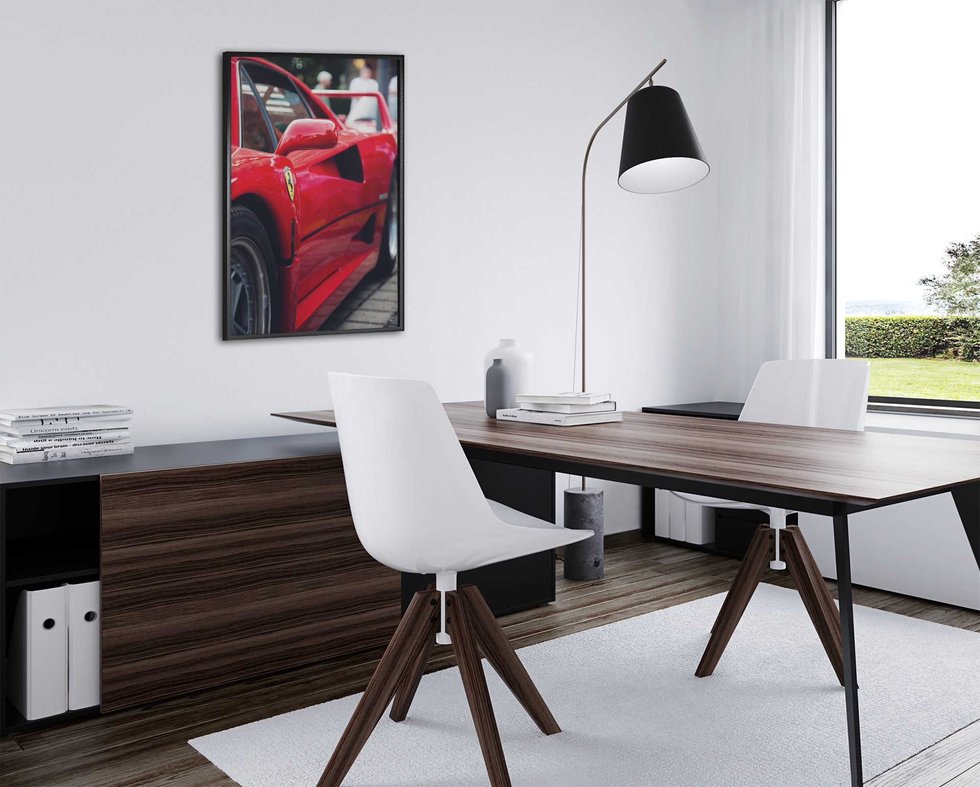 Das Ferrari F40 Wandbild zeigt eine der radikalsten Ikonen der Automobilgeschichte – gebaut für 320 km/h, designt für Gänsehaut.