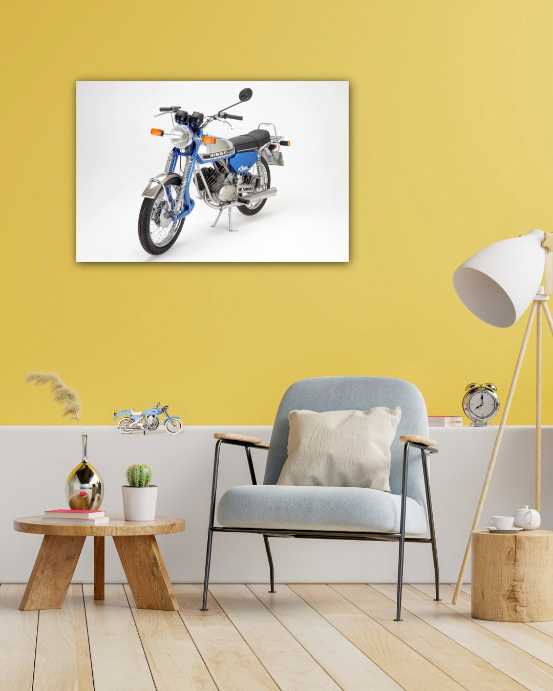 Perfekt für alle, die sich an die erste große Liebe auf zwei Rädern erinnern oder einfach ein Stück Motorradgeschichte an der Wand erleben möchten.